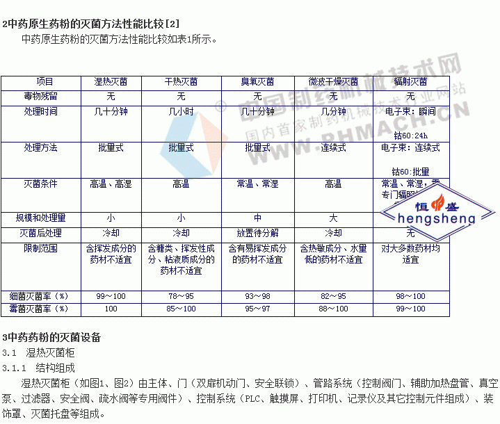 本文通過對中藥原生藥粉的滅菌方法、性能比較、滅菌設備、滅菌設備的簡要說明、滅菌設備的構造、滅菌設備的工作原理及滅菌設備的滅菌性能的確認方法等內容的介紹,使制藥企業能夠根據生產品種的實際靈活的選擇滅菌效果好、投入小、運行成本低、藥粉成分變化小、與中藥現代化要求一致、能耗低、安全、環保、方便、易操作的滅菌方法。